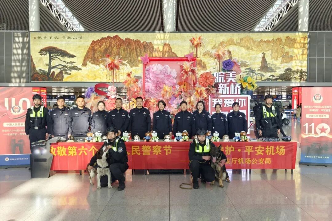 1月9日,安徽省公安厅机场公安局在航站楼组织开展“忠诚守护 平安机场”为主题的“110警察节”宣传活动。