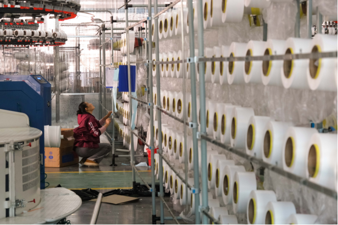 近年来,安徽省蚌埠市五河县将纺织服装作为主导产业重点培育,加速构建集棉纺、家纺、服装生产于一体的产业集群。目前,该县纺织产业集聚区已汇聚60余家织造企业,拥有加弹机、化纤纺织织机及大圆机等各类设备2万余台(套),形成了从原料加工到终端成品制造的完整产业链。其产品广泛应用于服装家纺、汽车医疗等领域,产业集聚效应日益凸显,年产值达45亿元。新华网发(李向前 摄)