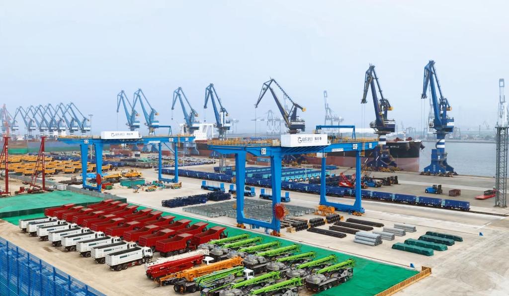 图为山东港口烟台港联通国际件杂货码头公司专业件杂货码头智能化轨道吊及专业化件杂货堆场。(受访者供图)