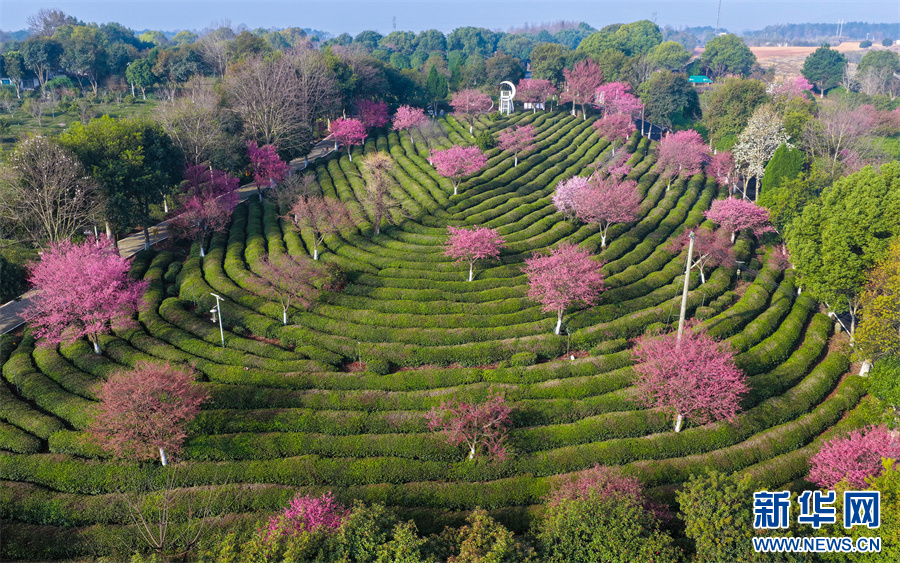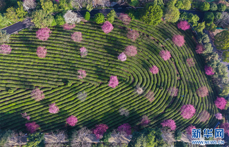 春日时节,安徽省黄山市徽州区谢裕大茶博园新茶吐绿,一树树樱花烂漫绽放,点缀在层层叠叠的茶园间,红绿相映,美不胜收。新华网发(施亚磊 摄)