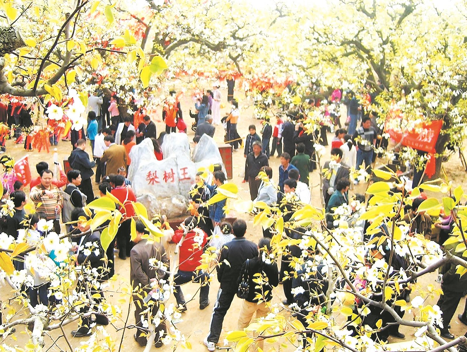 如今,砀山县依托“梨树王”、百年老梨树群,形成了一条完整的休闲农业与乡村旅游产业链。每年春天的梨花节、秋天的采梨节办得隆重而热闹。国际马术二星级耐力赛、国际梨园马拉松赛、中华民族大赛马等大型体育赛事纷纷落户砀山,乡村旅游和大众体育完美结合,展现出黄河故道的独特魅力。