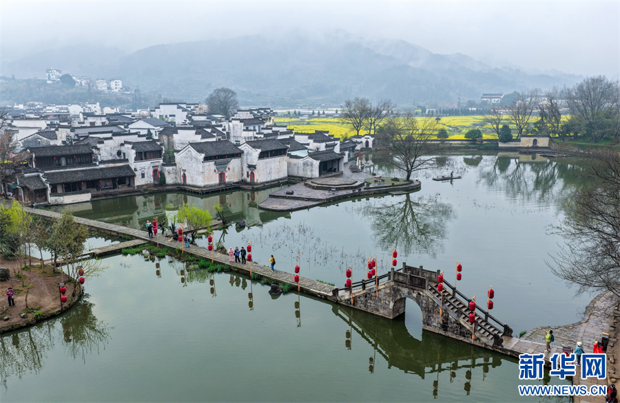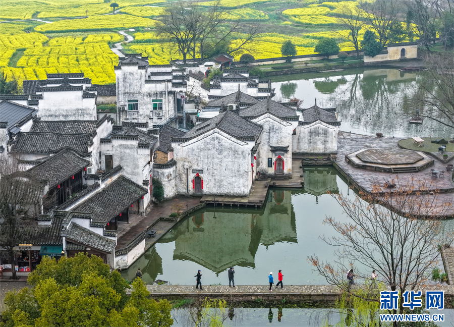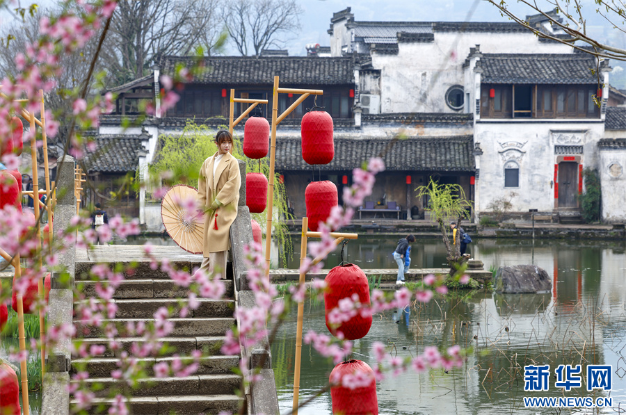 当日,春日的安徽省黄山市徽州区呈坎村一派生机盎然,粉红的桃花、金黄的油菜花点缀在粉墙黛瓦间,新绿的柳枝轻拂永兴湖畔,与古桥、民居构成一幅色彩斑斓的江南春景图,令人沉醉。新华网发(施亚磊 摄)
