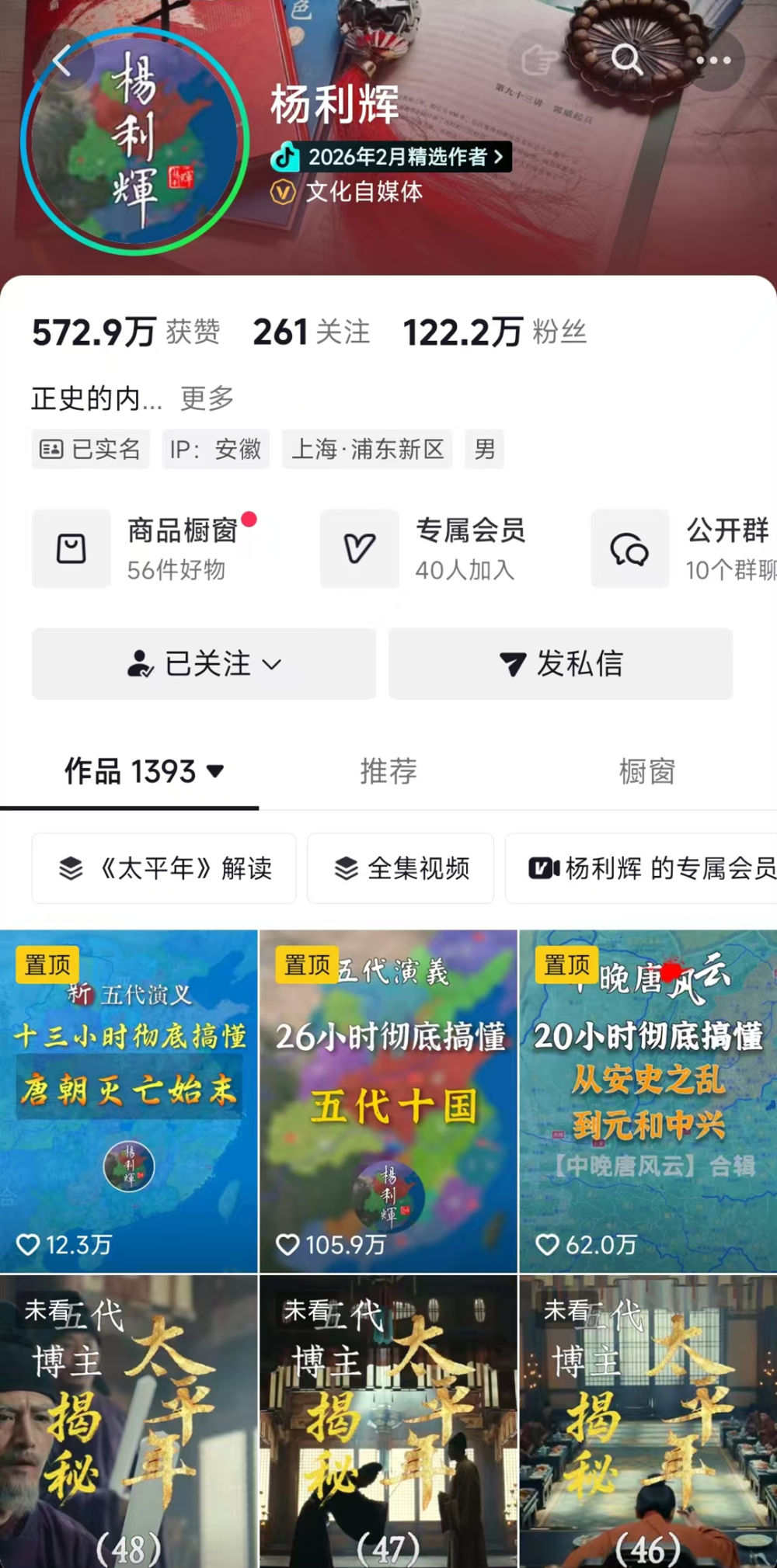 杨利辉的抖音账号主页。