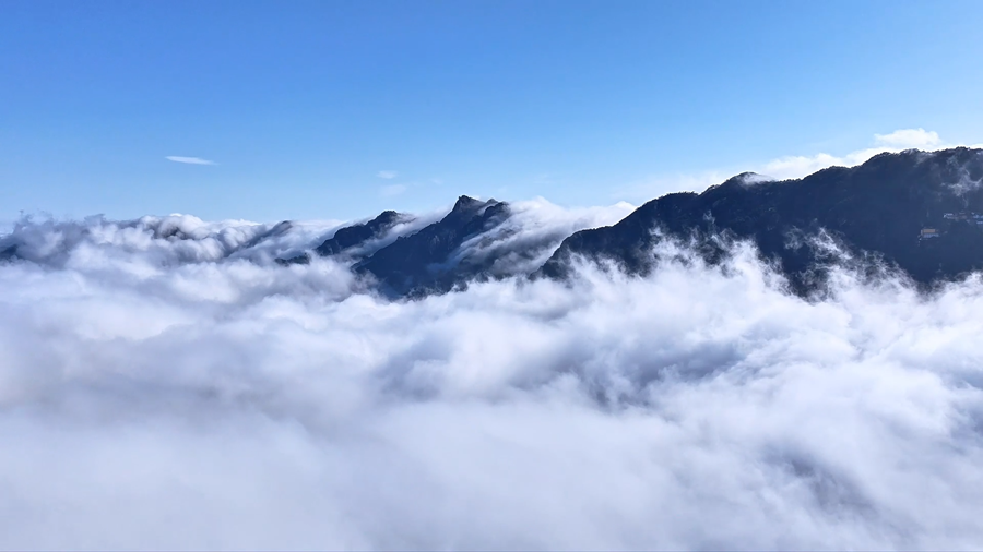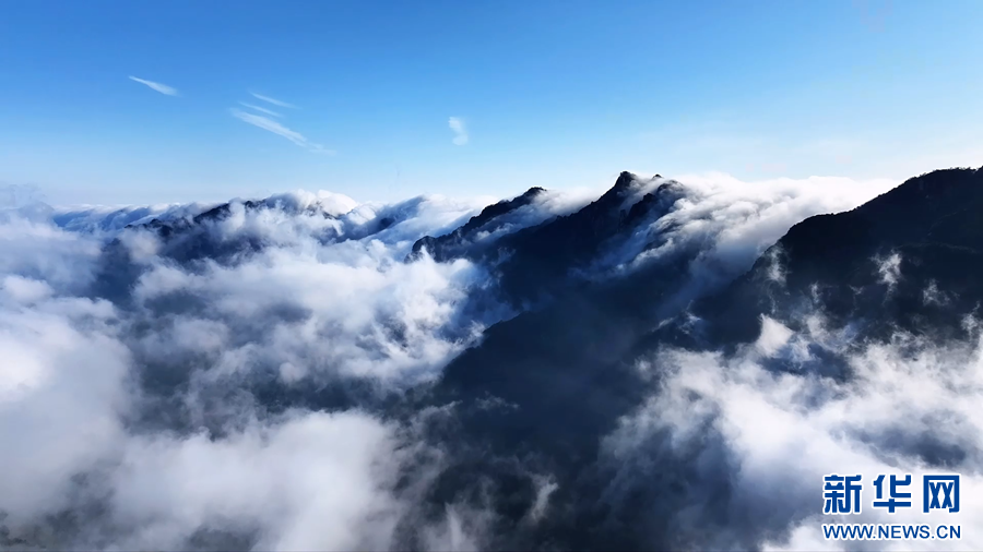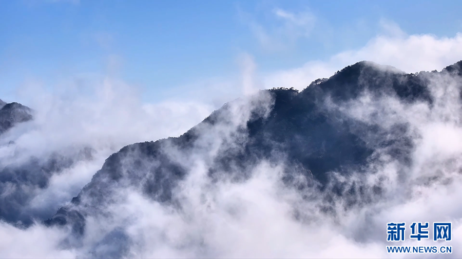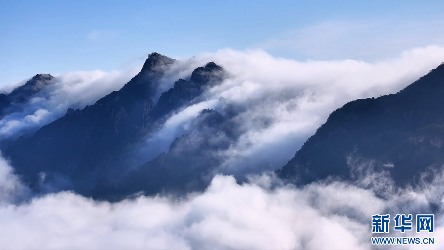 近日,安徽九华山雨后初霁,山间云雾蒸腾,形成了壮美的流云飞瀑景观,云雾顺着山谷倾泻而下,如天河奔涌、白练悬空,美不胜收。