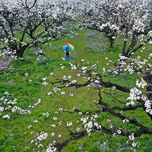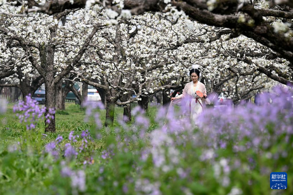 眼下,安徽省宿州市砀山县50万亩梨树迎来盛花期,千树万树梨花如云似雪,漫野飘香。丰富多彩的活动在梨园上演,吸引各地游客前来踏青赏花。