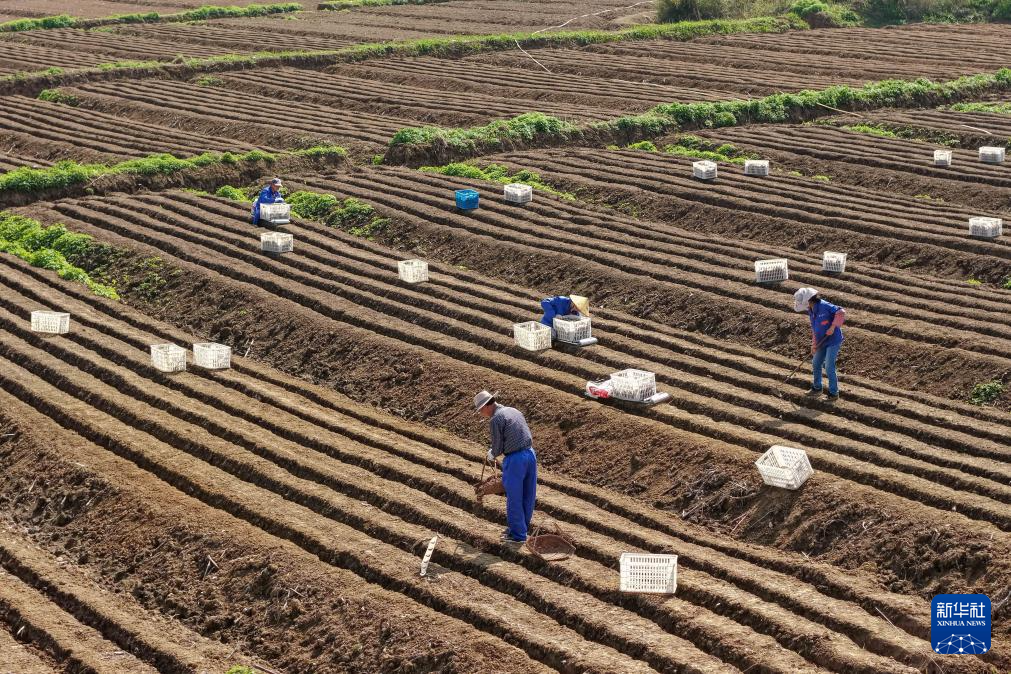 4月5日,在安徽省铜陵市郊区大通镇大院村,农民在种植白姜。新华社记者 张端 摄