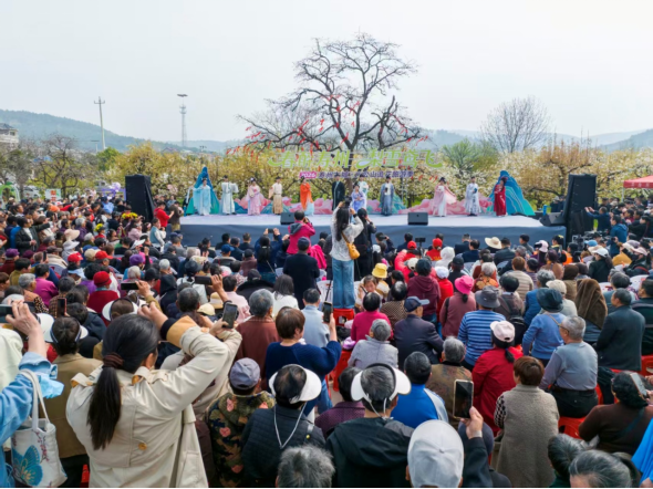 在八公山片区,万亩梨花竞相绽放,如云似雪,美不胜收。围绕梨花诗会主题,主办方安排了花神巡游、梨园戏会、歌舞表演等精彩内容,充分展现了八公山的自然风光与人文魅力。游客漫步花海之间,既可欣赏春日胜景,也能参与诗意互动,感受传统文化的独特韵味。