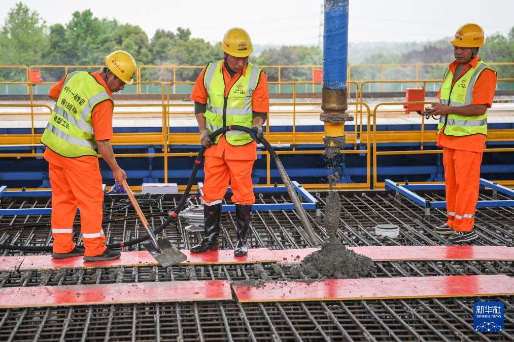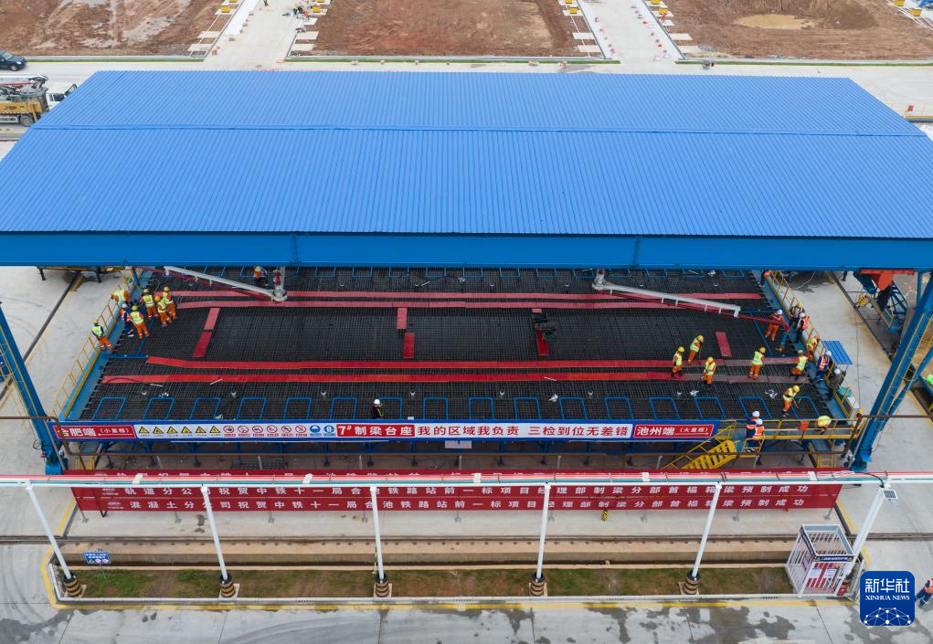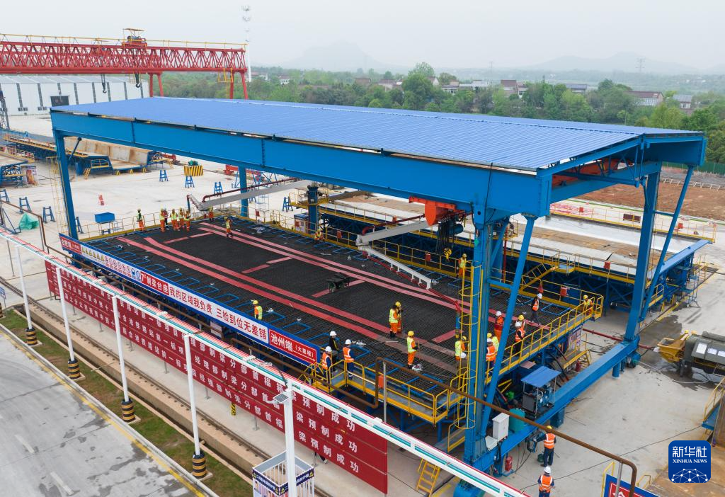 4月16日,工作人员在制作首榀箱梁。新华社发(丛刚摄)