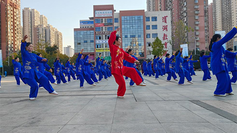 【记者:潘峰】活动中,安徽省武术运动员来到合肥市包河区烟墩街道顺园社区,与正在晨练的市民深入交流。队员们不仅解答大家关于科学健身的疑问,还手把手地指导技术标准。