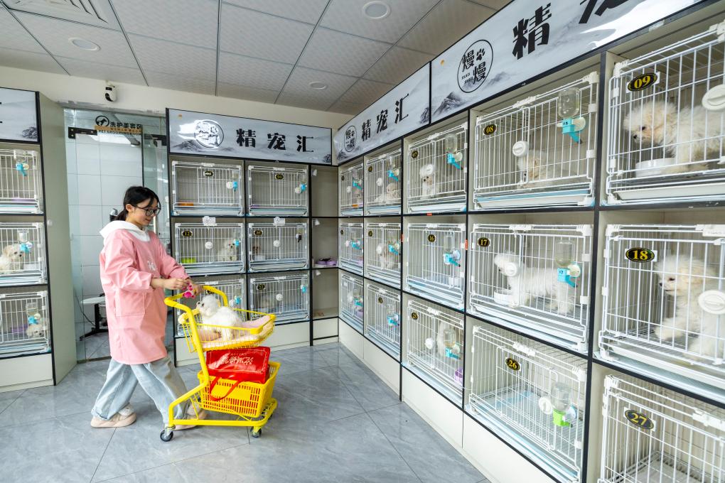 【记者:水金辰 马姝瑞 王菲】周五的安徽省宿州市花鸟鱼虫宠物大市场,犬吠与叫卖声交织,380多间商铺几乎都挤满了客商。